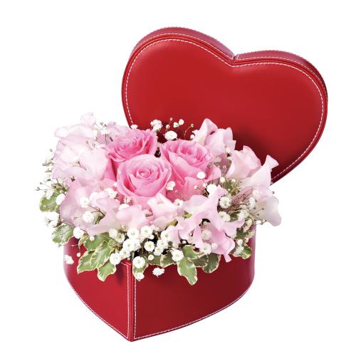 フリルのようなスイートピーと特に女性から人気の高いピンクバラ、可憐なカスミソウをハートボックスに入れてお届けします。1月から3月限定のアレンジメントで、奥様や恋人に季節のお花を贈りませんか?