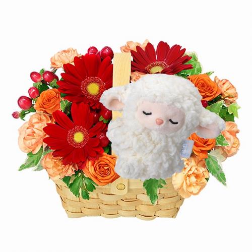 目を惹く赤のガーベラを、ウッドバスケットに活けたアレンジメントです。ガーベラの花言葉は「希望」。前向きな花言葉を持った花のギフトは、友達や家族への誕生日・記念日のプレゼントにおすすめです。動物のマスコットは、パンダ・三毛猫・うさぎなどの豊富なラインナップから1つお付けいたします。どのマスコットが届くかはお楽しみ!