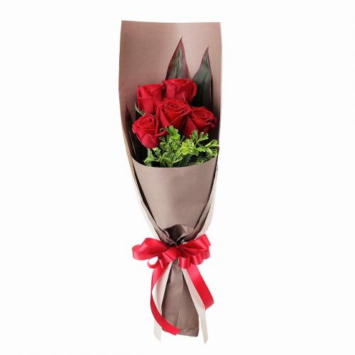 5本のバラの意味は 「あなたに出会えた心からの喜び」。パートナーや大切な人へのプレゼントにぴったりです。シンプルなバラの花束が、まっすぐに想いを伝えてくれます。