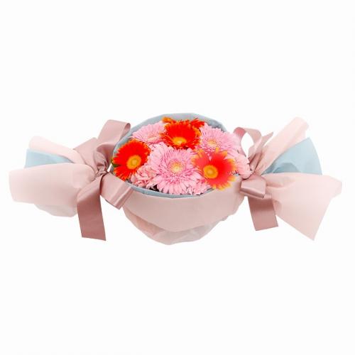 キャンディー風のラッピングが可愛いアレンジメント。丸い形が愛らしいガーベラとスイートなラッピングは相性ぴったりです。キャンディーには「あなたのことが好きです」という意味もあり、特に彼氏・彼女・恋人へのプレゼントにおすすめです。