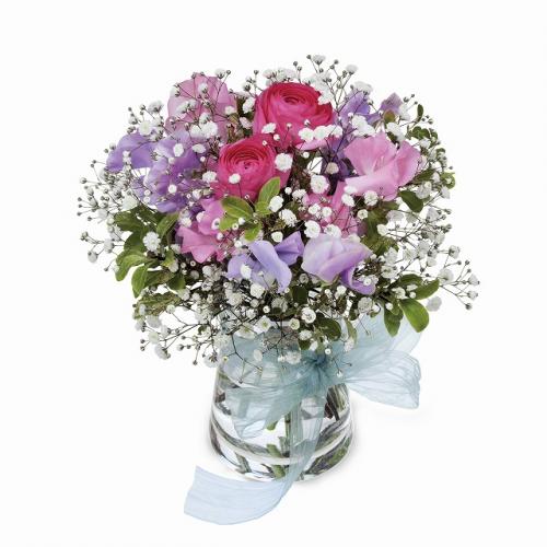 ラナンキュラスとスイートピーのグラスブーケ(花瓶付き)